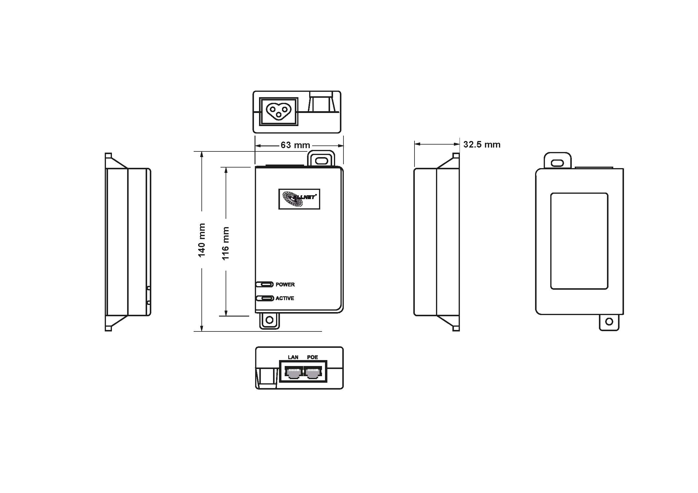 Durch die kompakte Bauform kann der ALLNET ALL0488V6 sehr unauffällig installiert werden. Er besitzt ein internes Netzteil und liefert die PoE-Spannung auf Pins 4,5 (+) und 7,8 (-).