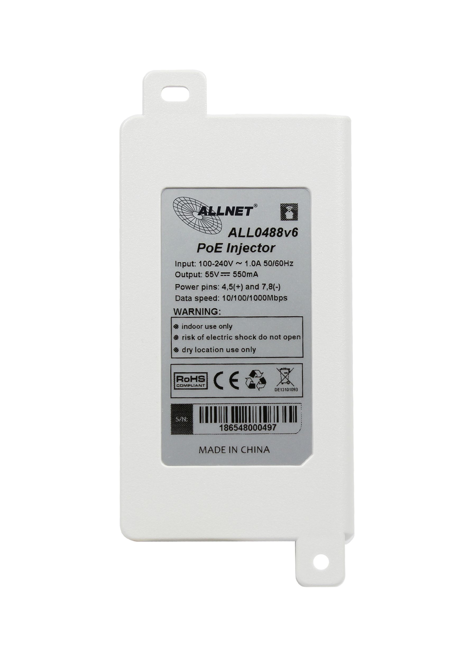 ALLNET PoE Injektor Gigabit PoE IEEE802.3af & PoE+ IEEE802.3at (15,4W/30W) / Kunststoffgehäuse / "ALL0488v6"