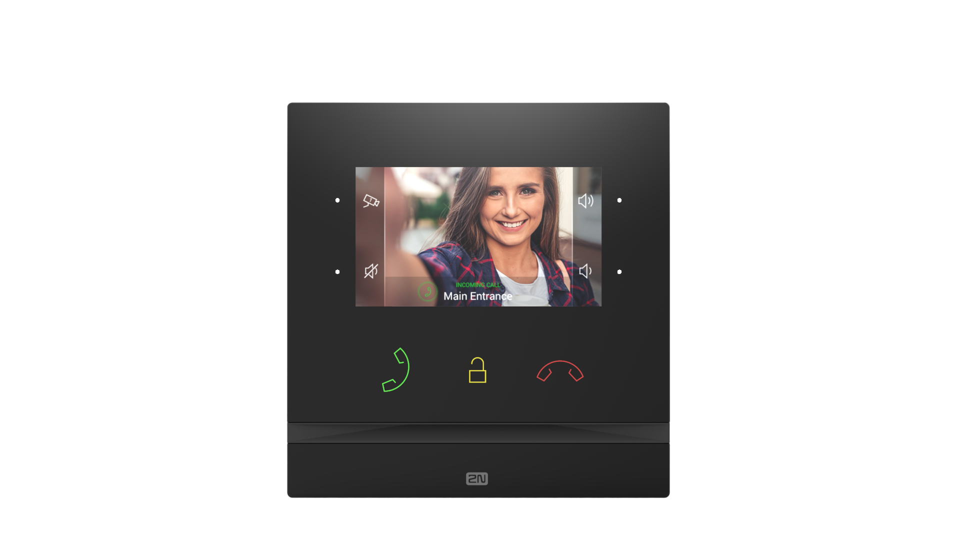 Wenn mit der 2N® Indoor Compact Einheit ein Anruf entgegengenommen wird, kann von der Kamera der Sprechstelle auf das Video aus der externen IP Kamera am Eingang umgeschaltet werden. Stellen Sie sicher, dass das Haus nur von der von Ihnen hereingelassenen Person betreten wird.