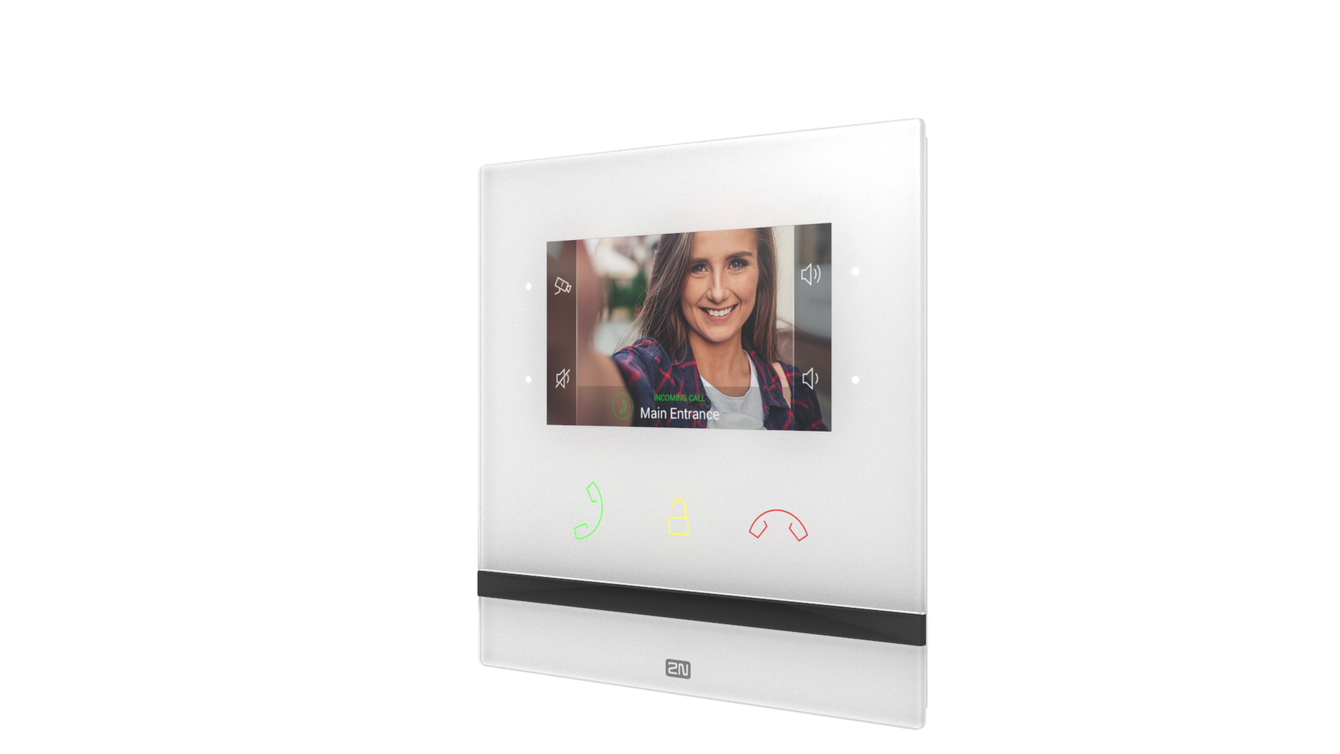 Wenn mit der 2N® Indoor Compact Einheit ein Anruf entgegengenommen wird, kann von der Kamera der Sprechstelle auf das Video aus der externen IP Kamera am Eingang umgeschaltet werden. Stellen Sie sicher, dass das Haus nur von der von Ihnen hereingelassenen Person betreten wird.