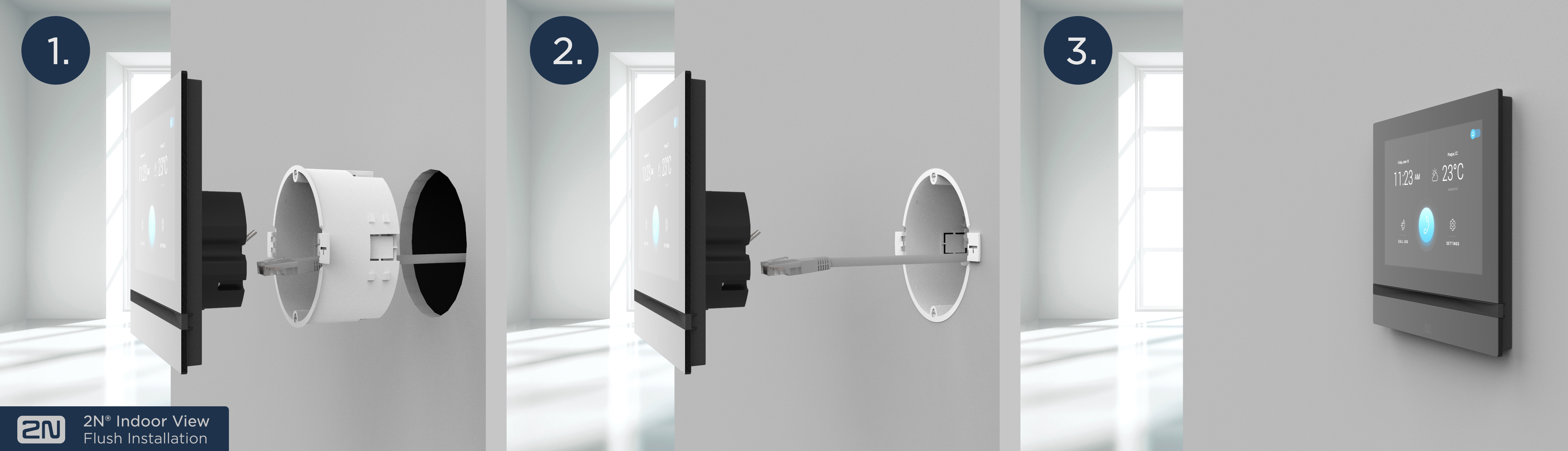 2N® Indoor Compact ist eine speziell für den Immobiliensektor konzipierte Gegensprechanlage für Innenbereiche. Die Installation durch den Anschluss eines einzigen UTP-Kabels und die Konfiguration über die Webschnittstelle garantieren eine schnelle und bequeme Inbetriebnahme für jeden Integrator. Den Benutzer überzeugt das minimalistische Design, die Oberfläche aus gehärtetem Glas, das 4.3“-Farbdisplay und die intuitive Steuerung. Eine einfache und elegante Lösung der Videokommunikation.