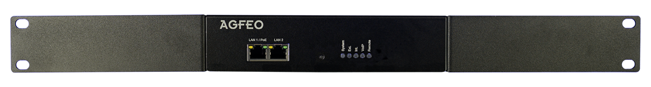 Full-IP System im 19"-Gehäuse (schwarz, 1HE) mit bis zu 30 VoIP-Kanälen (6 im Grundausbau, 24 weitere via kostenpfl. opt. Lizenz) und bis zu 40 Benutzern (10 im Grundausbau, 30 weitere via kostenpfl. opt. Lizenz). Unterschiedliche Status via LED Anzeige. LAN- Anschluss für SIP intern und SIP extern. Individualisierbare MoH, Aktivierung 2. Netzwerk-Schnittstelle über optional erhältliche ETH Plus Lizenz, integr. Voiceboxsystem inkl. Voice to Mail (4 Voiceboxen im Grundausbau, erweiterbar auf 40 via Lizenz), Faxbox System via opt. Lizenz (Faxempfang inkl. Fax to Mail, max. 3 Faxboxen), Audio-Informations-System (1-kanalig, optional per Lizenz erweiterbar auf 4 Kanäle), optionales Anruf-Management-System (AMS) per Lizenz, TAPI-Serverfunktionalität (opt. Lizenzen zur Erhöhung der unterstützten TAPI-Lines v. 3 Stück per Default auf max. 43 und CSTA Erweiterung), Unterstützung DECT IP-System. Türbildanzeige auf Systels, DECT IP-Geräten und im CTI Client. SmartHome Server on Board inklusive Unterstützung der SmartConnectBox (ext. Relais u. Sensoren). Konfiguration via LAN. Integr. Updateserver mit hinterlegten FW-Ständen für angeschl. Systemtelefone. Betrieb von AGFEO ST 22 IP, ST 42 IP, ST 45 IP, ST 53 IP, ST 54 IP und ST 56 IP möglich. AGFEO Dashboard Server (on Board) für CTI/UC Funktionalität via optionaler Lizenz dauerhaft aktivierbar (Demobetrieb möglich), CTI/UC Steuer- und Bedien-Software AGFEO Dashboard inkl. mögl. VISOfon Funktionalität (optionale Lizenzerweiterung).