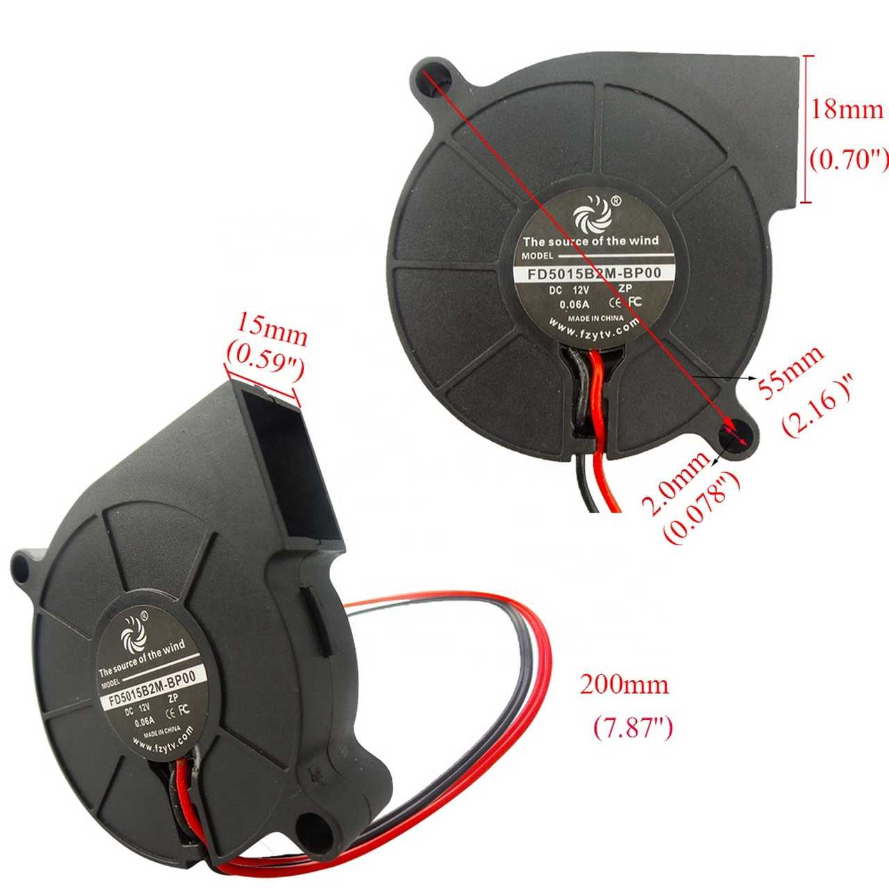 Produktinformationen "ALLNET 4duino 3D Drucker zbh. Schneckengebläse Lüfter Fan FD5015B2M-BP00"