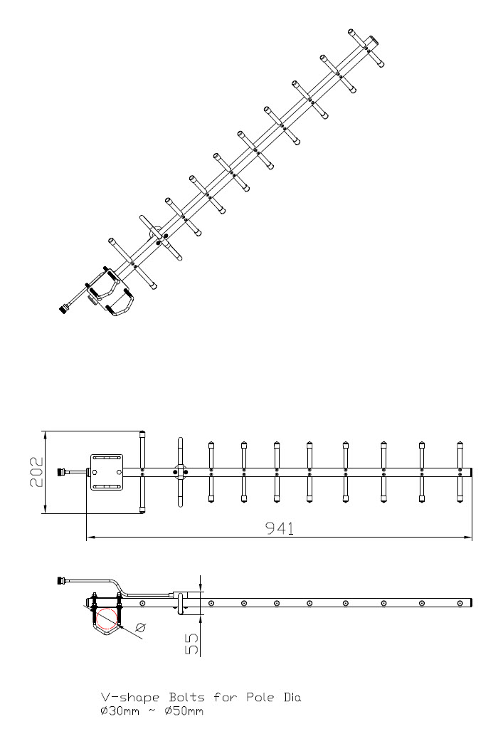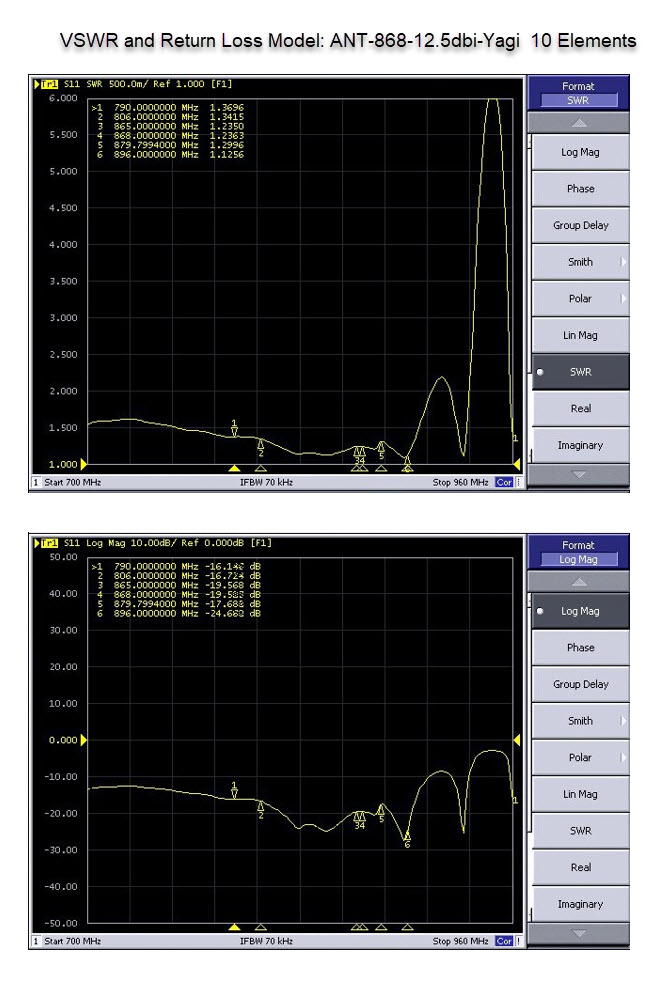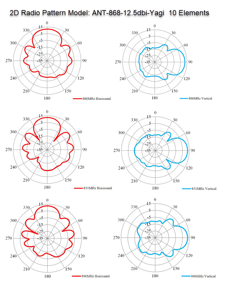 | Model | ANT-868-10dbi-Yagi | ANT-868-12.5dbi-Yagi | ANT-868-14dbi-Yagi |