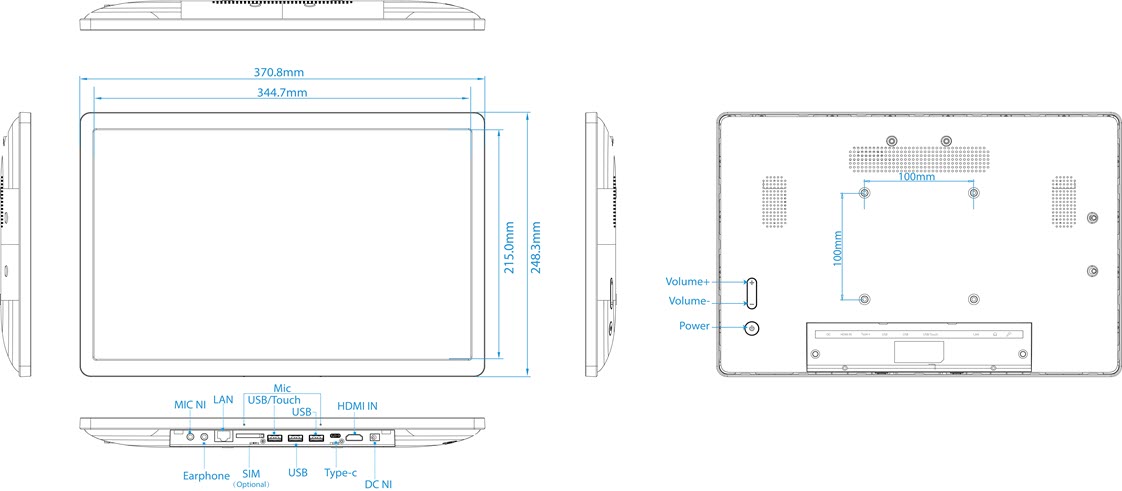Allnet Display 16 Zoll, TV Style, Interaktives Touch Kioskterminal, Android 12, RK3588, NFC, PoE, HDMI In, Farbe schwarz