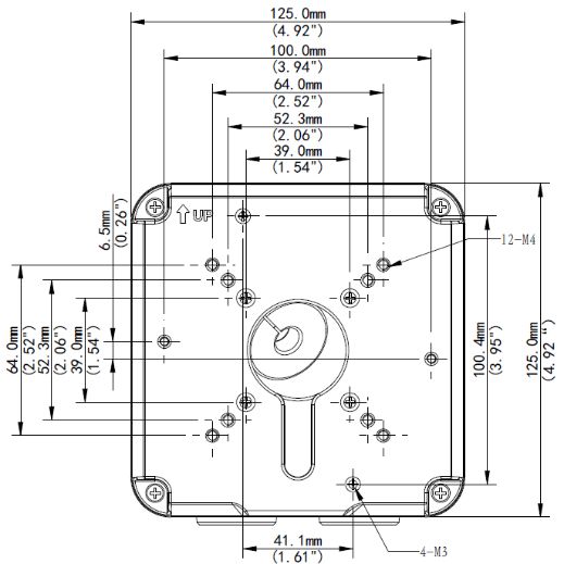 120mmx120mmx53.4mm(4.7”x4.7”x2.1”)