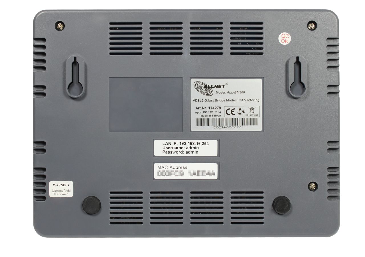 Das ALLNET ALL-BM300 ist ein multi VDSL2 & G.fast Bridge Modem, welches Ihnen auf schnelle und einfache Weise Zugang zum VDSL2 Internet ermöglicht. Das Modem wird einfach mit einem Breitband-Router, Firewall PC oder MAC verbunden, weitere Einstellungen sind nicht nötig (Für VLAN-Enstellungen kann in der Weboberfläche eine VLAN ID konfiguriert werden). Am LAN Port/Anschluss muss nur noch ihr Router/Firewall/PC etc. angeschlossen werden.