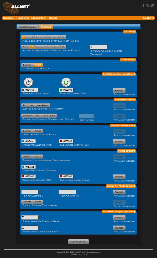 Über das ALLNET ALL4175v2 4-fach Netzwerk Relais können elektrische Geräte über ein Computernetzwerk geschaltet werden. Die Konfiguration und Bedienung erfolgt unabhängig von einem Betriebssystem über einen beliebigen Webbrowser vom PC, MAC, Tablet oder Smartphone. Zusätzliche Software wird nicht benötigt.