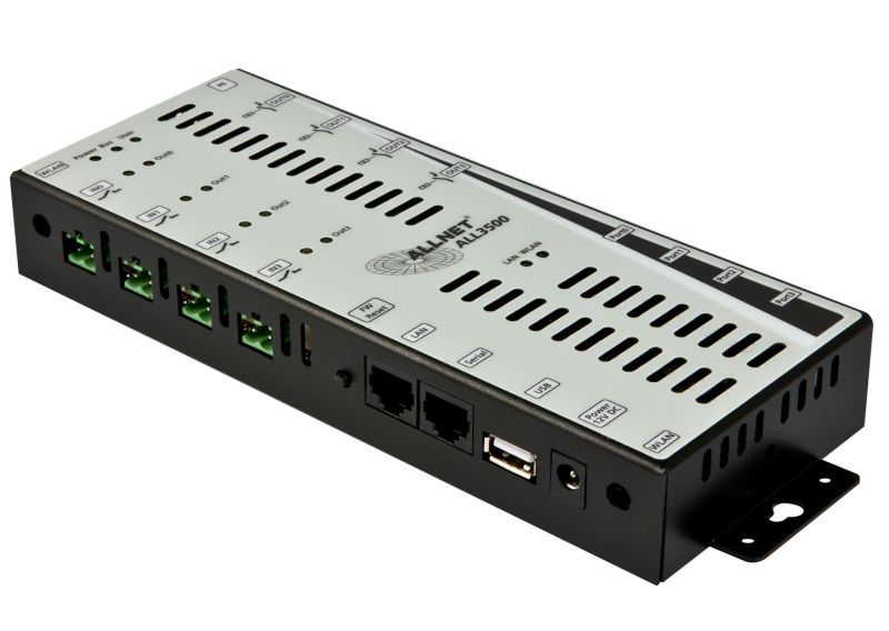 Die ALLNET ALL3500v2 überzeugt durch ihre Flexibilität und Funktionalität: Mit vier Ports für externe Sensoren und Aktoren, vier Relaisausgängen zur Steuerung von Lasten und vier Kontakteingängen für Taster oder Schalter bietet sie eine ideale Grundlage für komplexe Automationsanwendungen.