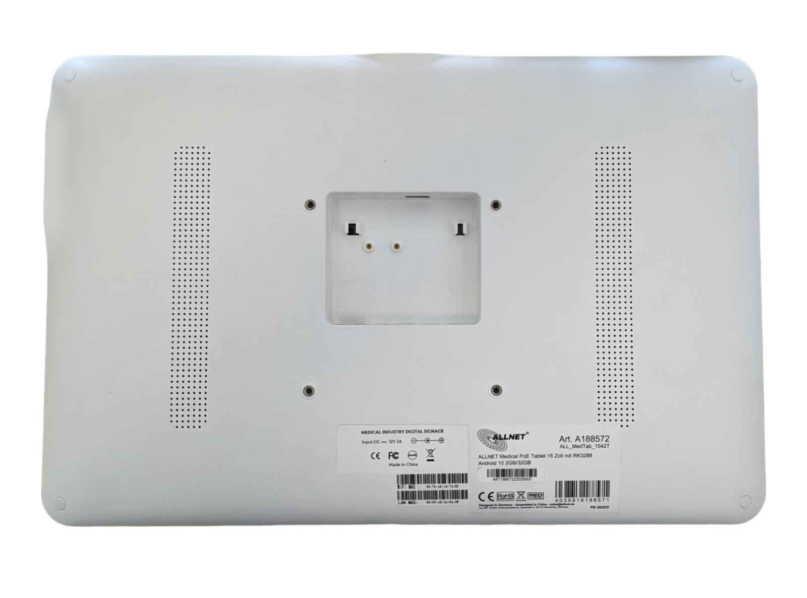 ALLNET Medical PoE Tablet 15 Zoll mit RK3568 Android 13 4GB/16GB
