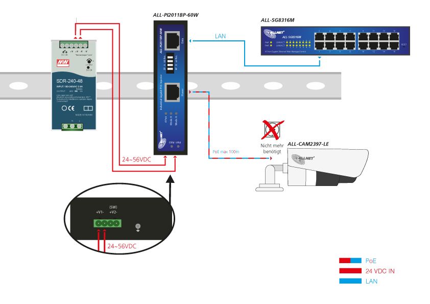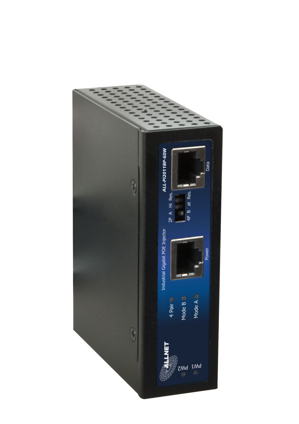 Produktinformationen "ALLNET PoE Injektor Industrial Gigabit / PoE & PoE+ & PoE 60W Microsemi (15,4W/30W/60W) / DIN / Power-Booster / Metallgehäuse / "ALL-PI2011BP-60W""