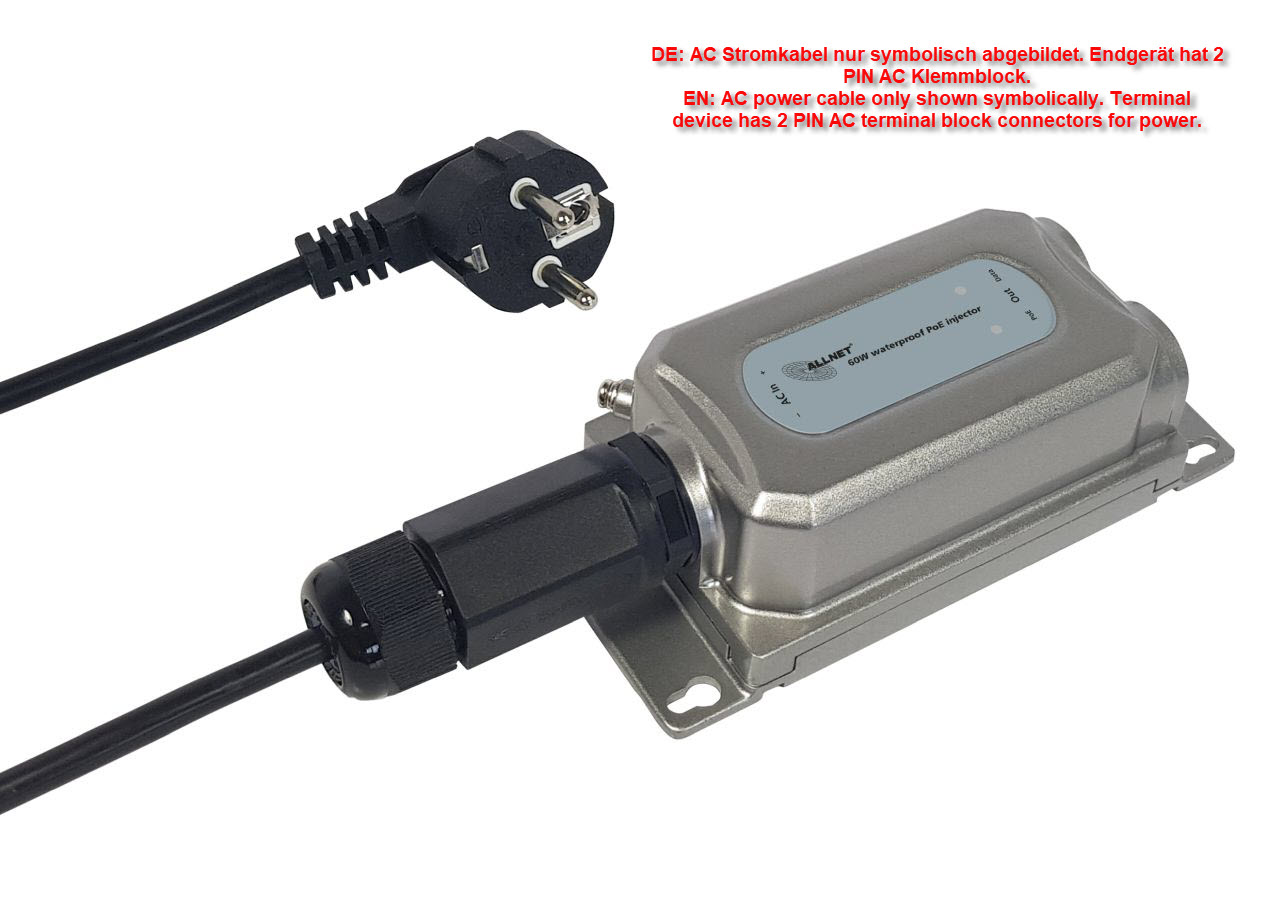 Produktinformationen "ALLNET PoE Injektor Outdoor IP67 IEEE802.3bt (15,4W/30W/60W) Metallgehäuse / ALL-PI2013OBT60"