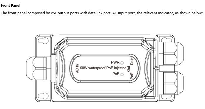 | Model: | ALL-PI2013OBT60 - 60W waterproof PoE injector AC to BT 60W |