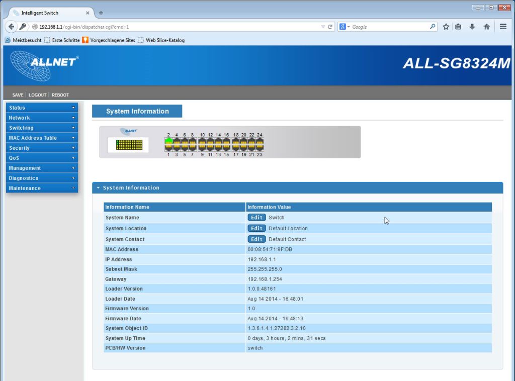 | Management: | smart managed (WebGui) |