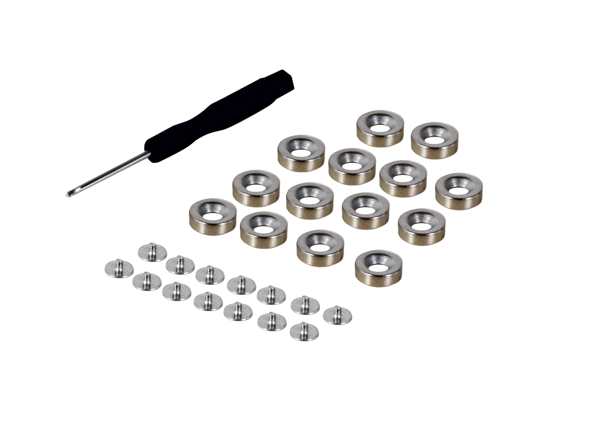 Blende aufliegend, bündig mit Rahmen und Wand. Magnete sind schraubbar versenkt in Blende, nicht abstehend.
