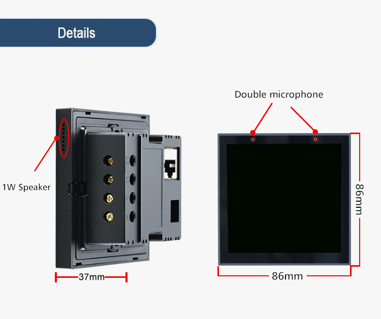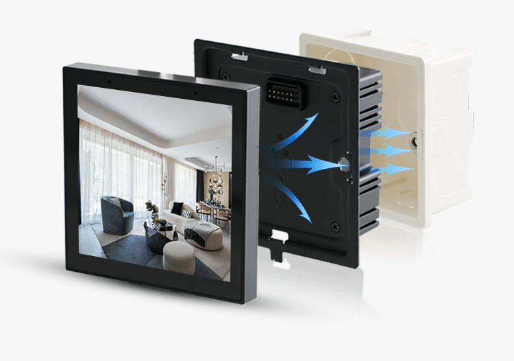 Kleines 4 Zoll PoE Display zur Integration in die Hausautomation, als Steuerungspanel für Licht, Ton und Heizung etc. Die Klemmen für 220V sind in dieser Version nicht aktiv.