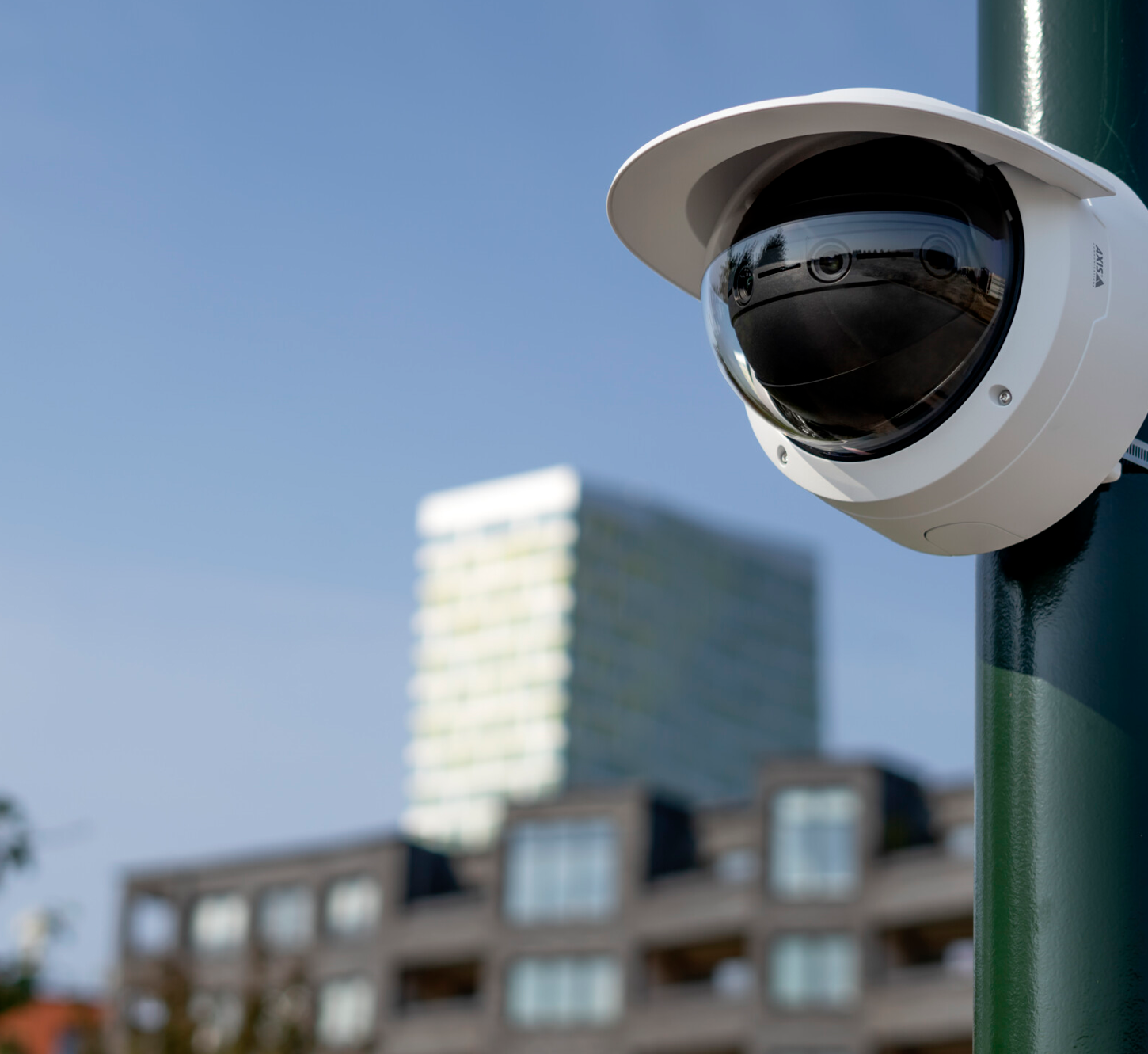 Die AXIS Q3839-PVE bietet einen 180°-Panoramablick auf weitläufige Gebiete. Mit einer Auflösung von 29 MP und nahtlosem Stitching aller vier Bilder bietet sie eine 180° horizontale und 90° vertikale Abdeckung bei 25/30 FPS.