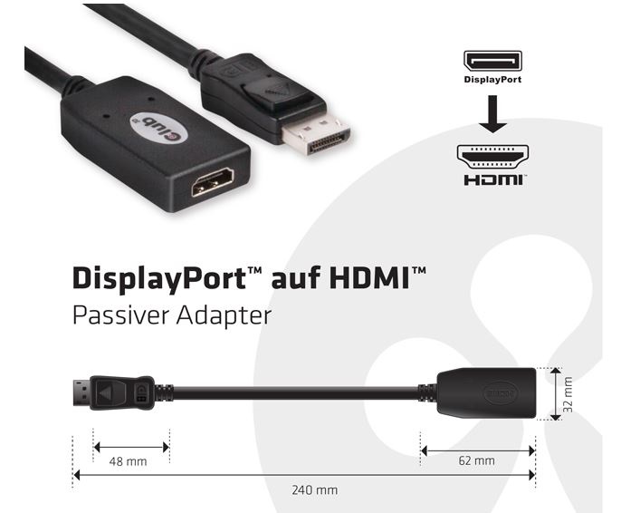 Produktinformationen "Adapter DisplayPort => HDMI *Club3D* passiv"