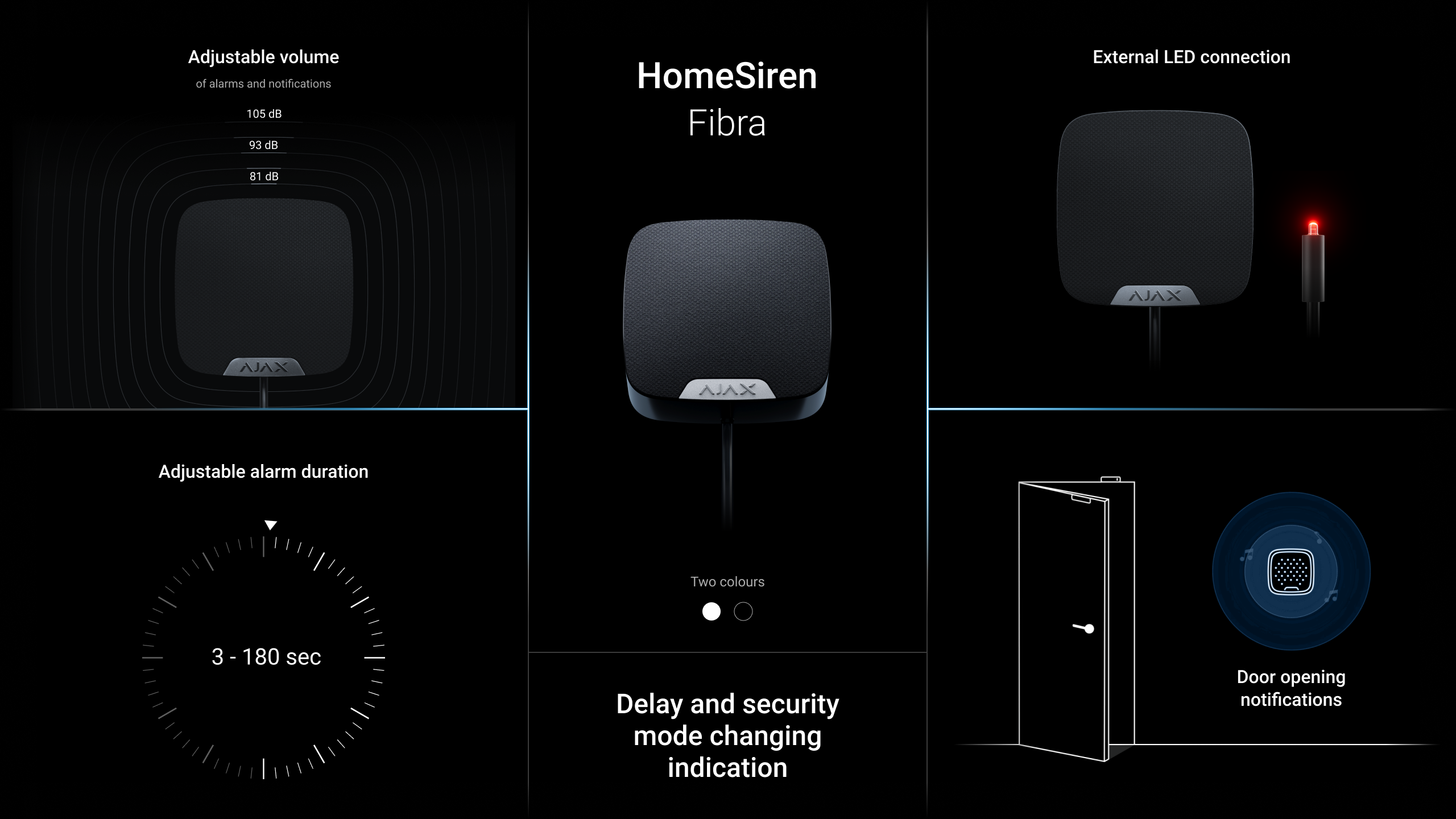 Die Ajax HomeSiren Fibra ist eine kabelgebundene Innensirene, die Alarme laut und zuverlässig signalisiert. Sie warnt Bewohner sofort vor einem Einbruchsversuch und bietet akustische Rückmeldungen zu Scharfschaltungen und Alarmen.