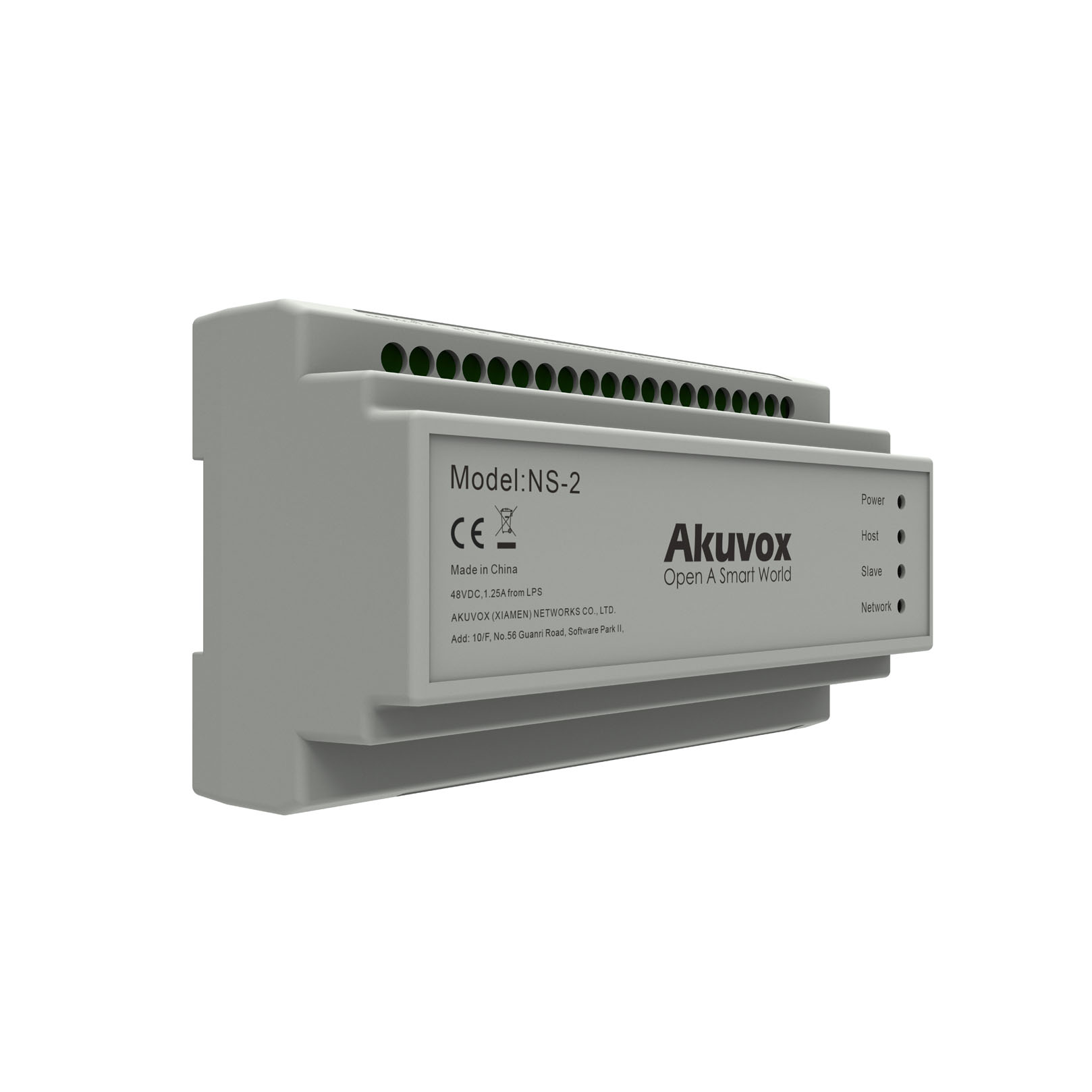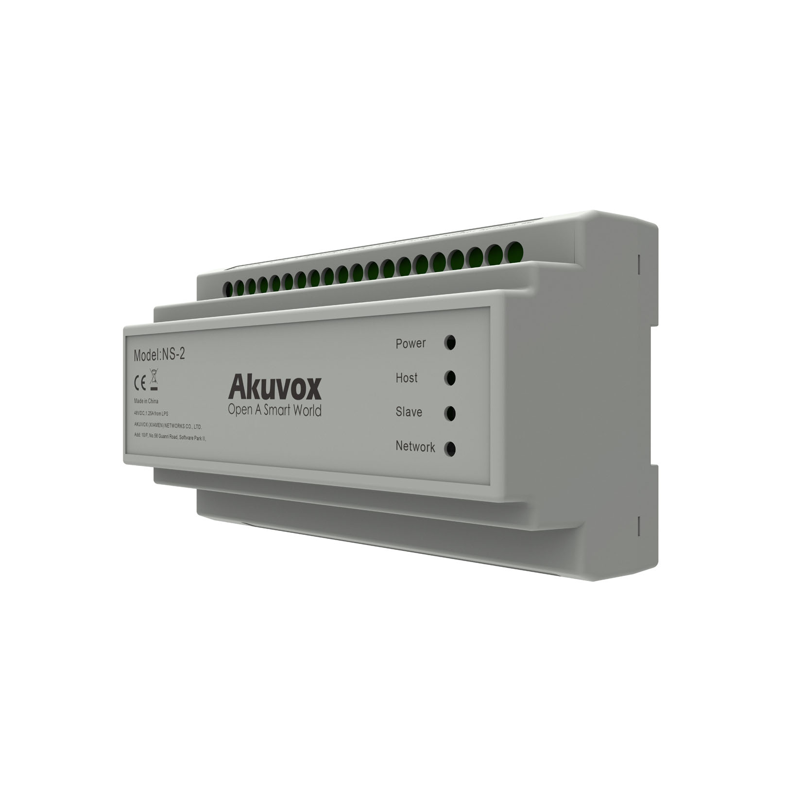 Der NS-2 ist ein 2-Draht-IP-Netzwerk-Switch von Akuvox, der eine bequeme Möglichkeit, analoge Intercom-Systeme aufzurüsten, ohne dass eine