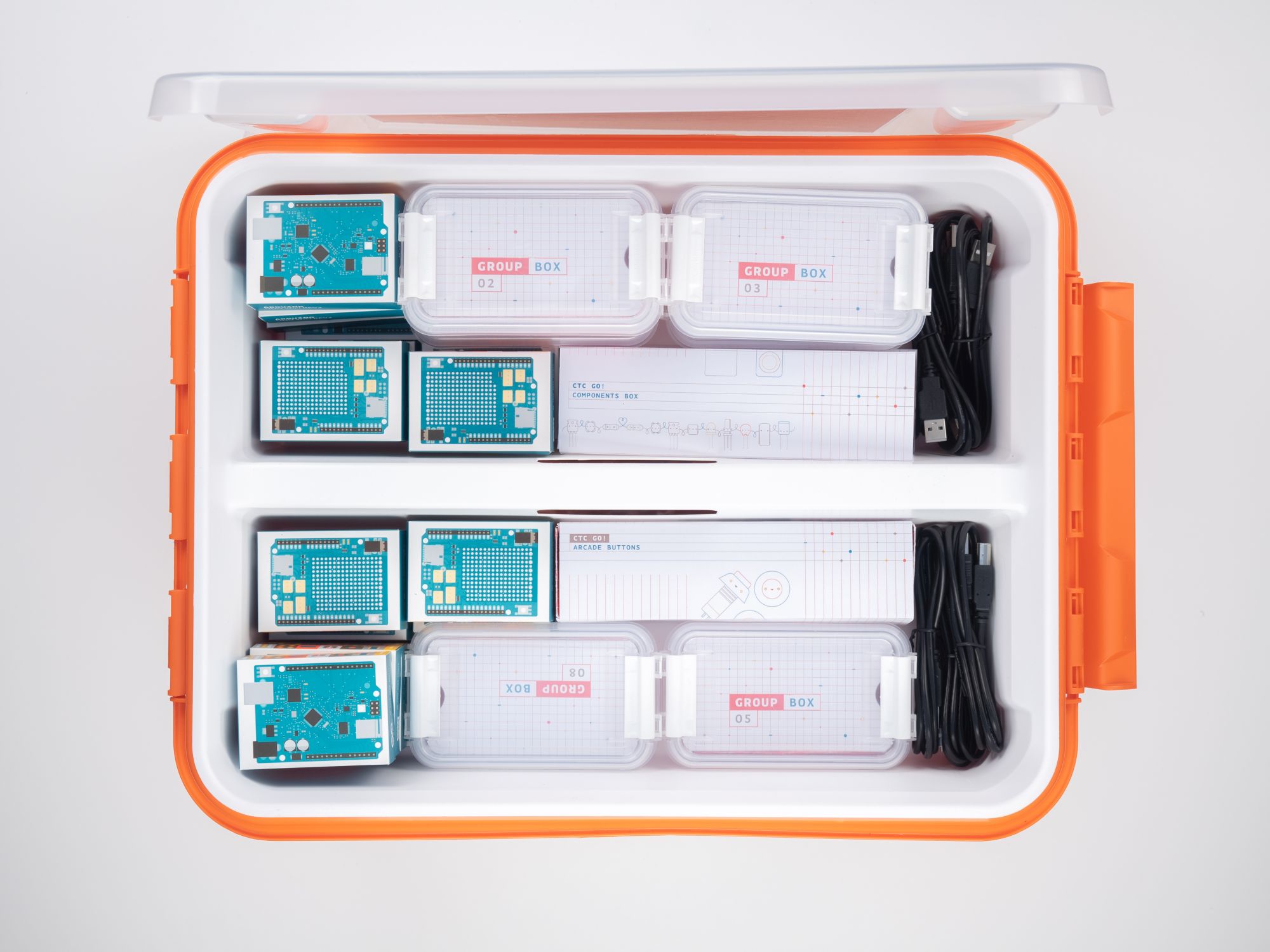 Das CTC GO! bildet das Herzstück der CTC-Reihe. Ein Kit besteht unter anderem aus 8 Arduino UNO WiFi Rev2 Boards mit integrierter inertialer Messeinheit und WiFi-Verbindung. Kompatibel dazu gibt es 8 Add-on Platinen, die speziell für den bildungstechnischen Bereich entwickelt wurden. Mit diesem Kit können 16 bis 24 Arduino Einsteiger acht spannende Projekte durchführen. Diese Projekte sind durch 8 Lerneinheiten begleitet. Nachdem die Grundlagen vermittelt wurden, kann man mit unterschiedlichen Erweiterungen sein Wissen erweitern. Die erste Erweiterung erscheint im ersten Quartal 2020. Weitere Erweiterungspakete zu den Themen Bewegung, Robotik, Mathematik, Weltraum, Naturwissenschaften und kabellose Technologien folgen.