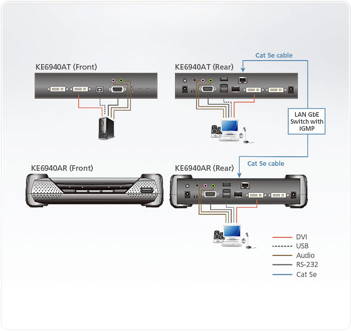 Produktinformationen "Aten KVM-Extender, over IP, Dual-Display KVM(nur Transmitter), DVI-I"