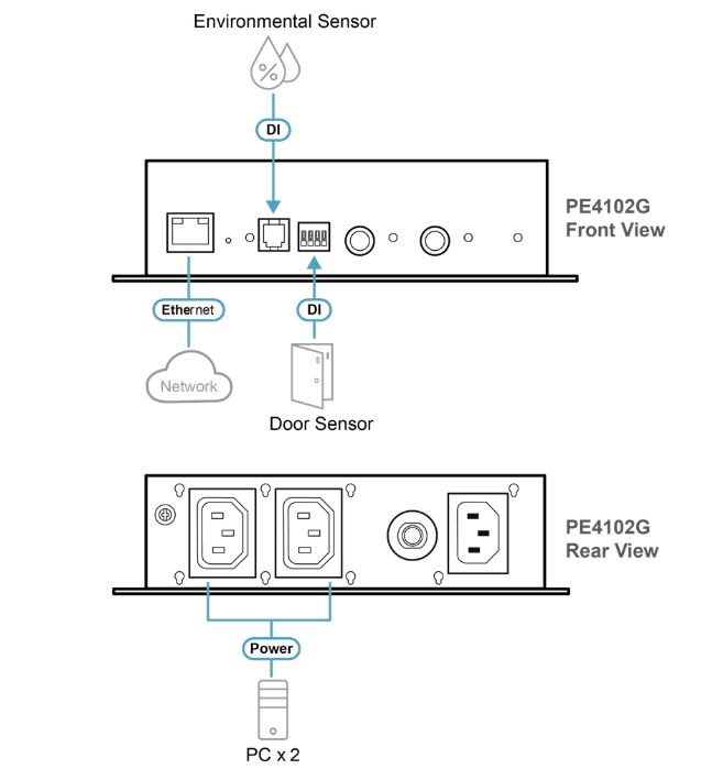 1x PE4102G 2-fach-Eco-PDU-Stromversorgungssteuerung