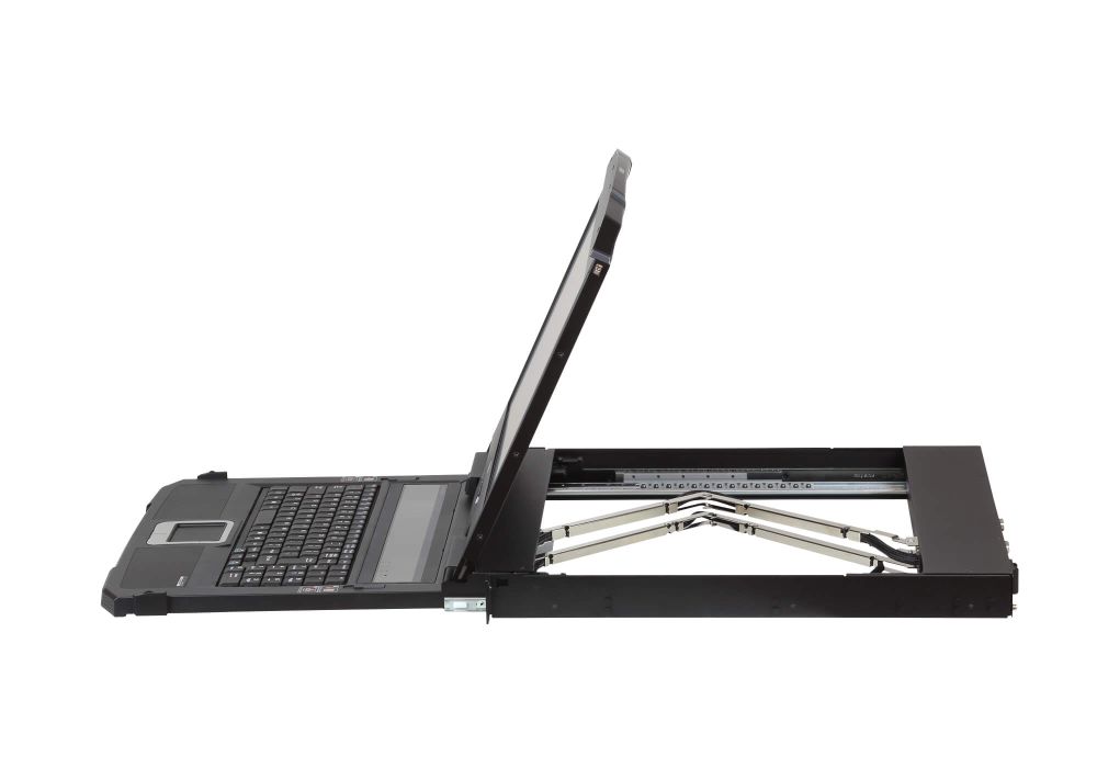 ntegrierte KVM-Konsole mit Dual-Rail Design und einem 18,5” FHD LCD-Monitor mit LED-Hintergrundbeleuchtung ermöglicht das Arbeiten auf engstem Raum