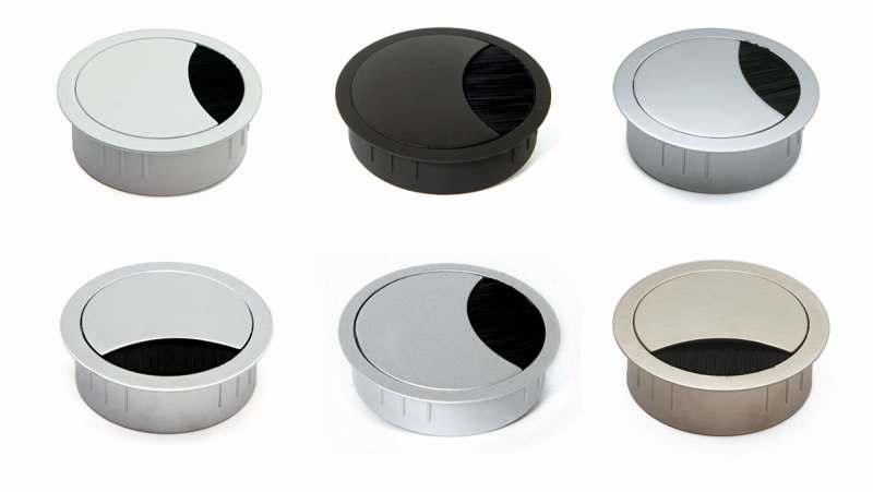 KABELDURCHRÜHRUNG rund mit arretierbarem Deckel, Durchmesser 80 mm, Farbe Schwarz ähnlich RAL9005, Deckel in vier verschiedenen Positionen arretierbar, mit integrierter Bürstenleiste, schwarz, verpackt im Polybeutel