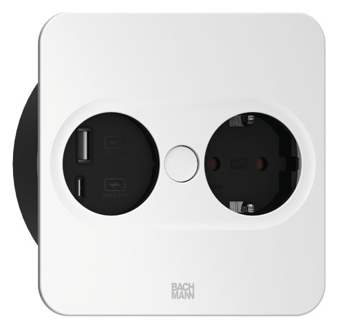 Produktinformationen "Bachmann TWIST, Steckdose, 1xCEE7/3, 1xUSB A/C 22W 2,0m AEH RAL9010 30GE eckig"