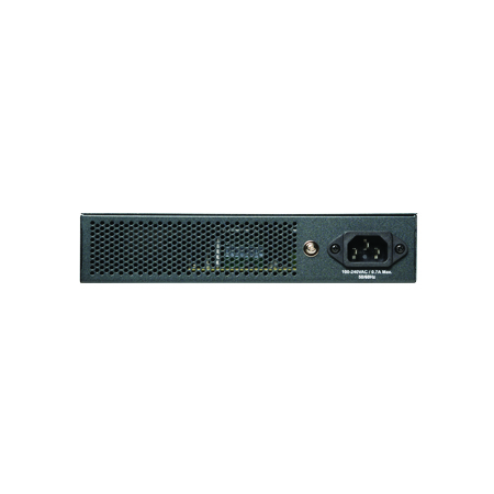 Intelligent Ethernet Switch, 8 x 1G and 2 SFP fiber ports, no power cord, L2 & L3 functionality, extensive QoS, ACL, Filtering, 20 Gbps switching capacity, 16384 MAC Addresses, 1024 ARP Entries, 4094 VLANs, LACP/Trunking, 8 x QoS Prioritry Queues, policy based Auto-Configuration, auto-policty wipe, wireless aware, Cloud management and On-Premises cnMaestro, rack mount kit, USB port, Serial console