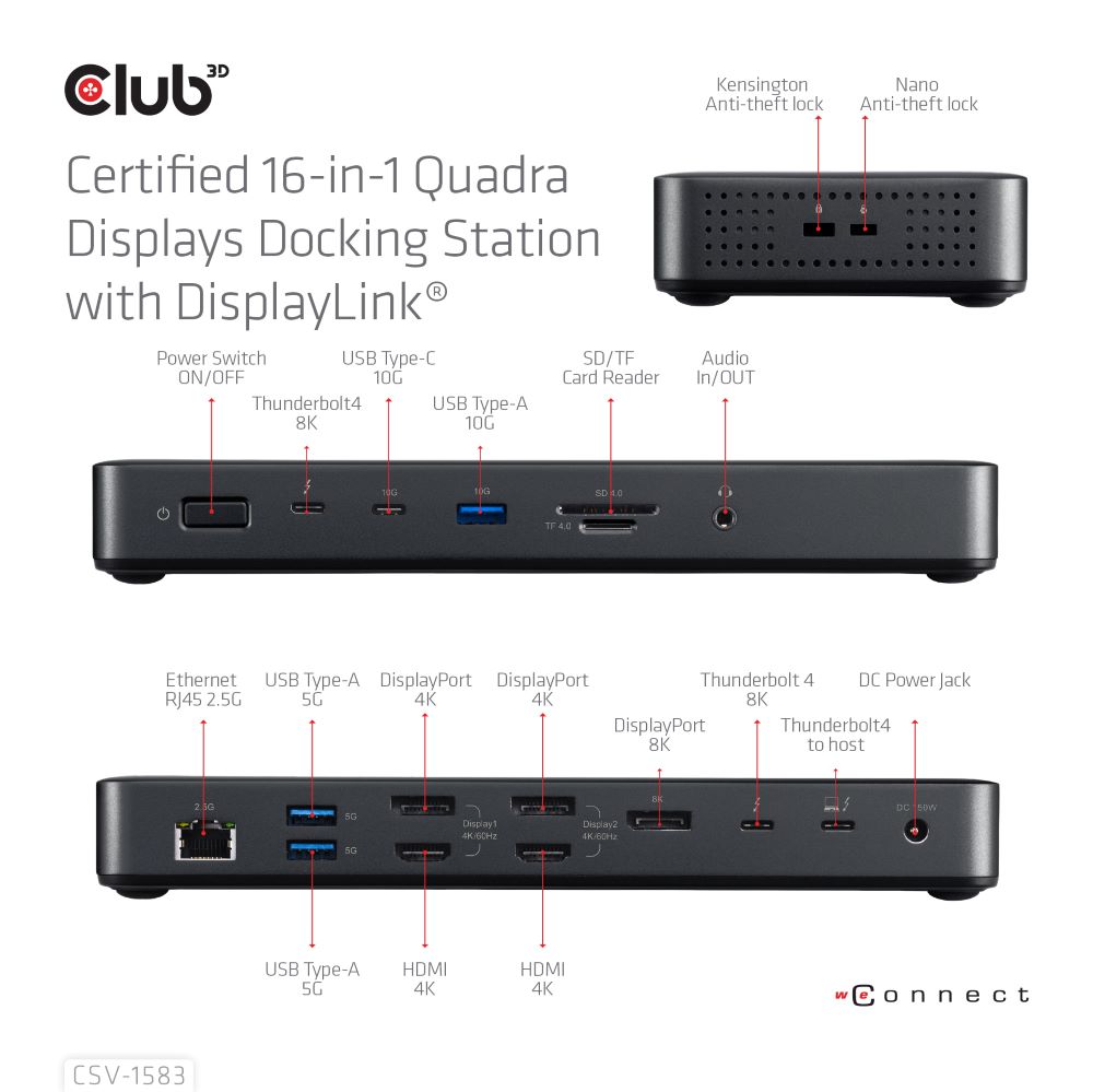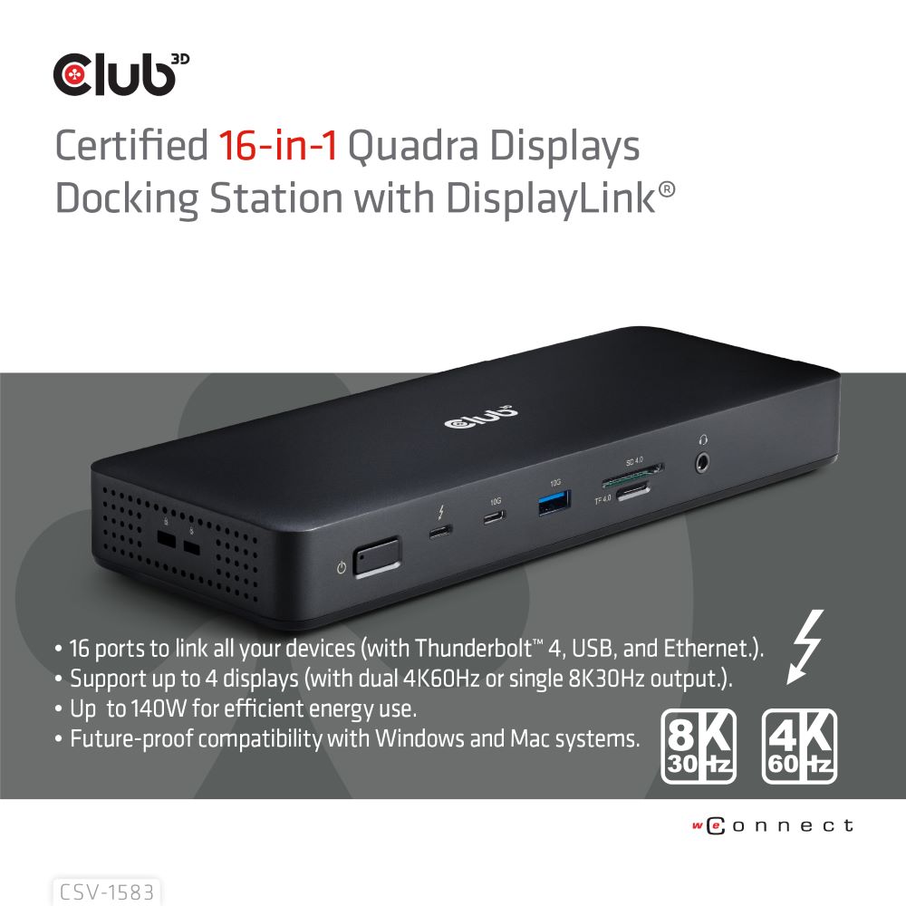 Club 3D Dockingstation - USB Typ C 16-in-1 *schwarz*