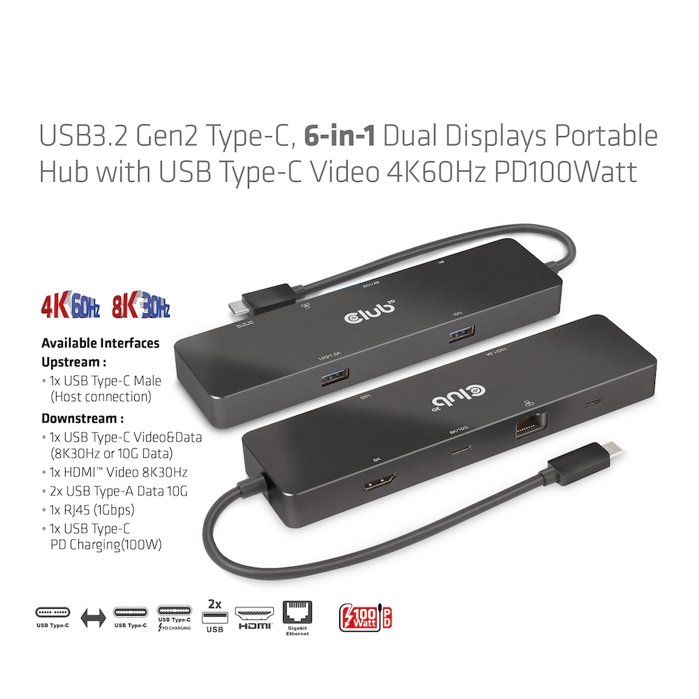 Club 3D Dockingstation - USB Typ C 6-in-1 MST Dual 4K60Hz Dual 4K60Hz *schwarz*