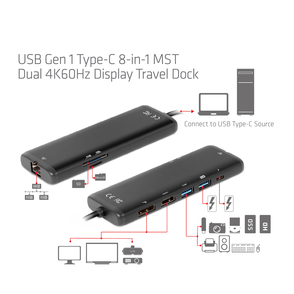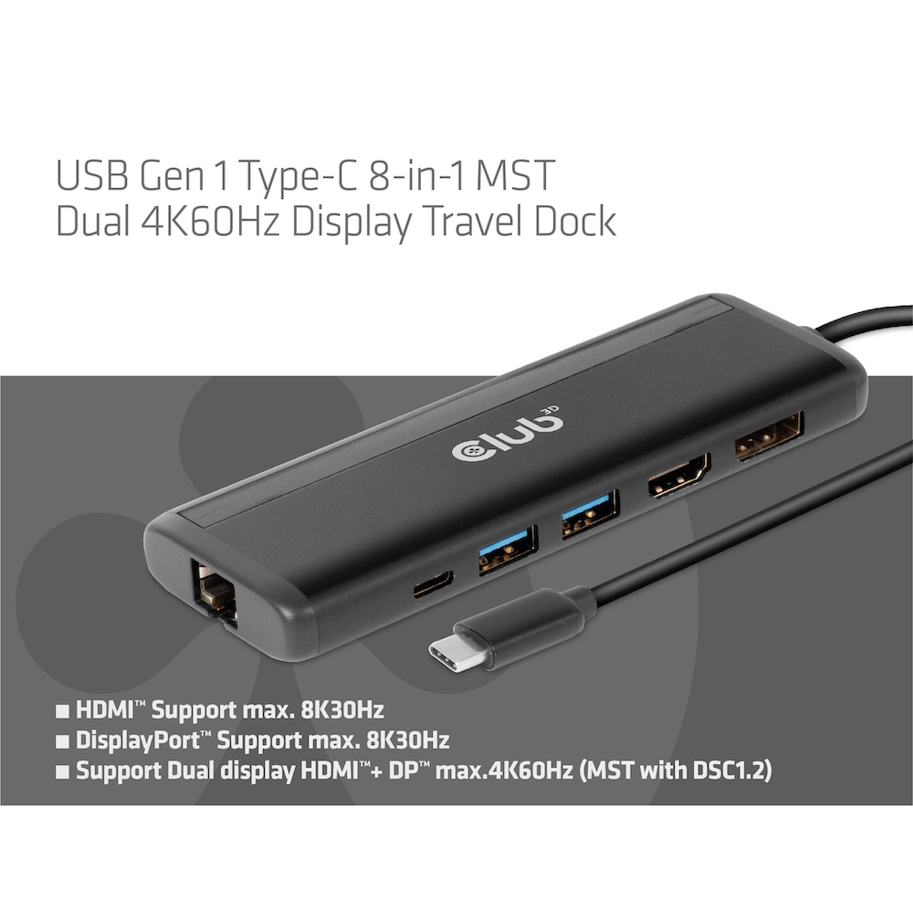Club 3D Dockingstation - USB Typ C 8-in-1 MST Dual 4K60Hz Dual 4K60Hz *schwarz*