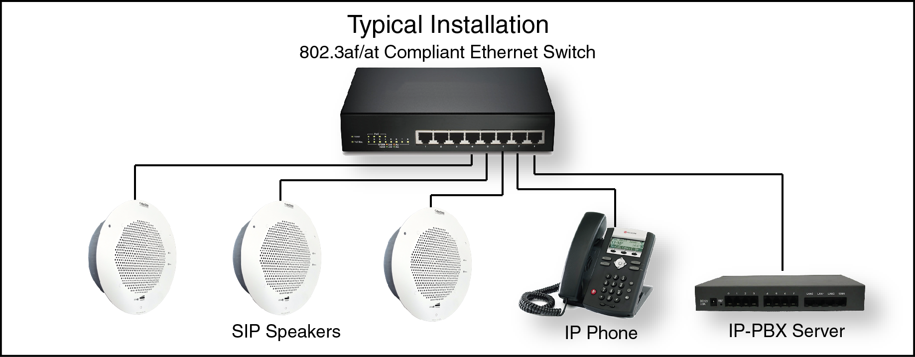 Der CyberData SIP Speaker ist die neueste IP-Technologie. Dieses Power over Ethernet (PoE 802.3af / 802.3at) VoIP-Massen-Benachrichtigungsgerät verfügt über eine netzgekoppelte Lautsprecherlautstärke, gleichzeitiges SIP- und prioritätsbasiertes Multicast-Streaming und integriert sich sowohl mit dem CyberData-Wandhalter als auch mit dem CyberData Wall Mount Clock Kit. Der Lautsprecher ist kompatibel mit den meisten SIP-basierten IP-PBX. In einer Nicht-SIP-Umgebung ist der Lautsprecher in der Lage, Audio über Multicast zu empfangen. Der geringe Platzbedarf und die geringe Bauhöhe lassen den Lautsprecher fast überall diskret montieren.
