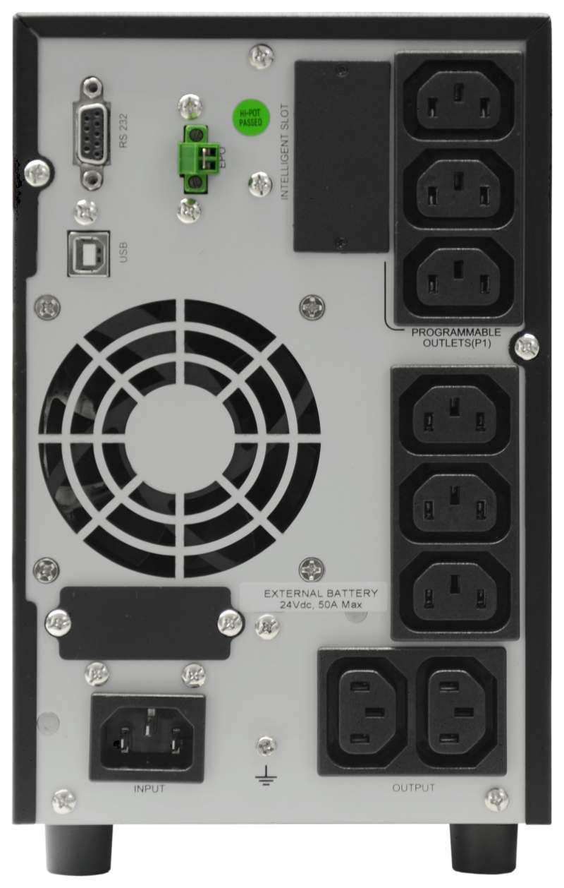 1100VA/990Watt, incl.PowerShut Plus, 8xKaltgerätedosen C13, Grundgerät: H240xB145xT376mm 13,1Kg, Akkupack:H240xB145xT376mm, 23Kg, RS232, USB, EPO, Karteneinschub für optional erhältliche SNMP/Relais-Karte, *reiner Sinusausgang*, Aut. (min.) cos phi 0,7= 36min Batteriezeit, 3 Jahre Garantie, Batterien 8x12V-9,5AH,