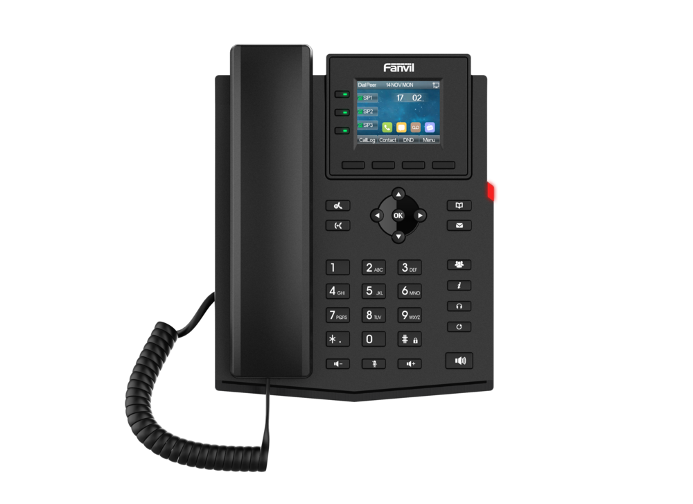 Das Fanvil X303W ist ein modernes Einsteiger-IP-Telefon mit integriertem 2,4 GHz Wi-Fi. Es kombiniert Flexibilität, Benutzerfreundlichkeit und hochwertige Sprachqualität – ideal für Unternehmen, Homeoffices und Hotels, die auf kabellose Freiheit setzen.