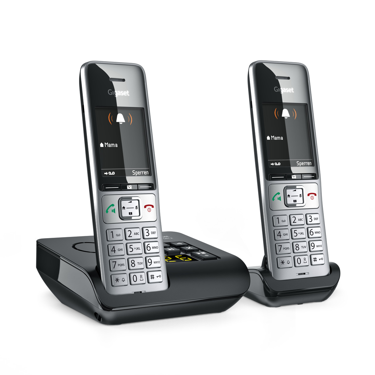 Das Gigaset Comfort 500A Duo umfasst zwei Mobilteile, die speziell für Senioren und Menschen mit besonderen Bedürfnissen entwickelt wurden. Beide Geräte bieten ein großes, gut lesbares Display, extra große Tasten, einen integrierten Anrufbeantworter sowie eine Notruftaste für mehr Sicherheit.