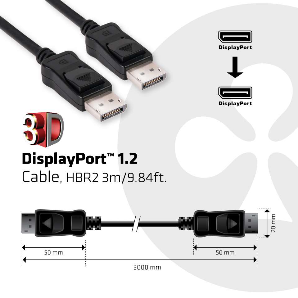 Produktinformationen "Kabel Video DisplayPort 1.2 4K60Hz UHD ST/ST 3,0m *Club3D*"
