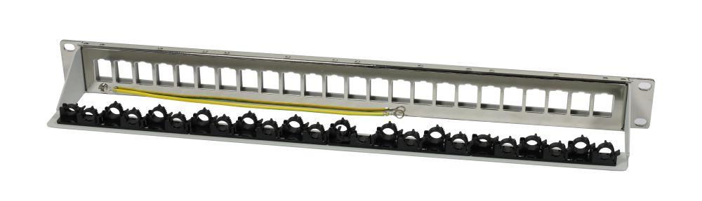 Produktinformationen "Keystone, Modulträger, 19"Patchpanel für 24xTP-Modul, 1HE(t 94mm), Lichtgrau, V4 mit Kabelklemme, Synergy 21,"