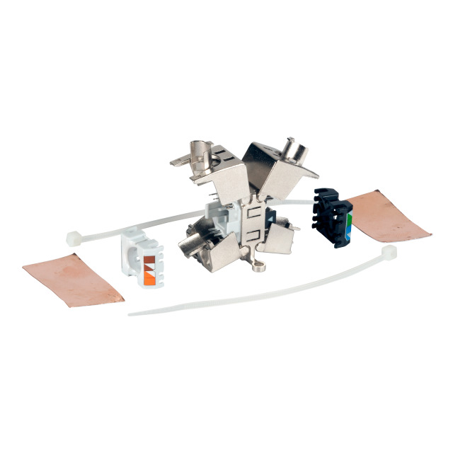 Lieferumfang: 1 x Verbinder, 2 x Kabelvorsortierer (schwarz + weiß), 2 x Kupferfolie, 2 x Kabelbinder