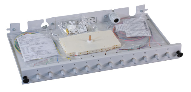 Produktinformationen "LWL-Patchpanel Spleisbox,19", 12xST, 50/125um,ausziehbar,OM4, Vorkonfektioniert,"