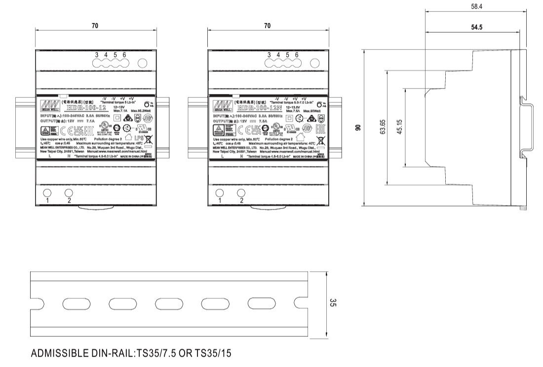 Produktinformationen "MEANWELL Netzteil - 48V 100W Hutschiene NON-LPS"