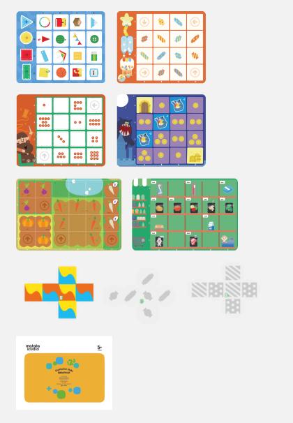 Die Erkundungskarten "Mathematik" für TaleBot und Coding Set enthält 3 Karten zu 6 Themen: Formen zuordnen, Süßigkeitenspiel, Omas kleiner Helfer, Münzen sammeln, Gemüse sammeln und Einkaufsliste, mit denen Kinder den Spaß am Programmieren in reichhaltigen thematischen Umgebungen erkunden können.