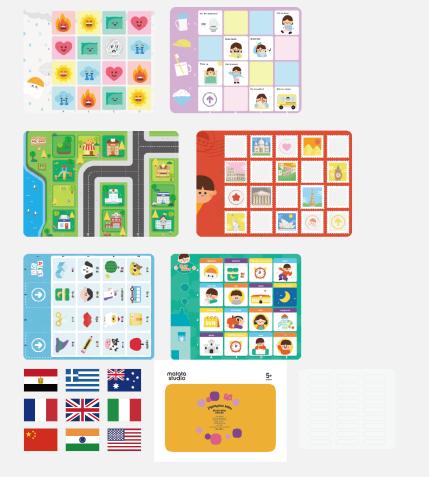 Die Erkundungskarten "Sozialkunde & Leseförderung" für TaleBot und Coding Set enthält 3 Karten zu 6 Themen: Gefühlsjagd, Morgenroutine, Meine Stadt, Matata reist um die Welt, Buchstabierübungen und Wettbewerb für lustige Geschichten, bei denen Kinder in einem reichhaltigen thematischen Umfeld den Spaß am Programmieren entdecken können.