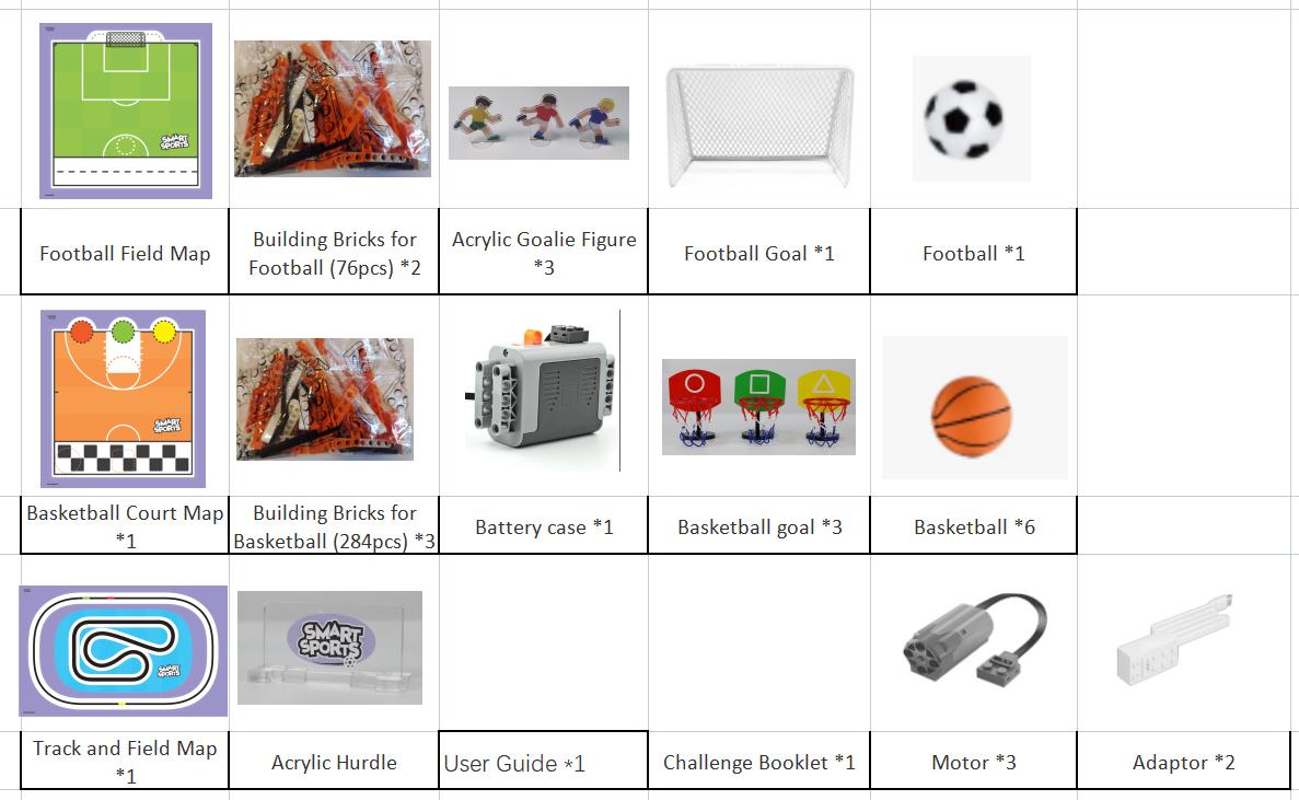 Das 3-in-1 Smart Sports Kit ist ein Erweiterungspaket für VinciBot, mit dem die Programmierfähigkeiten, das logische Denken und die Zusammenarbeit der Kinder trainiert werden sollen. Das Kit enthält drei Themen: Fußball, Leichtathletik und Basketball.