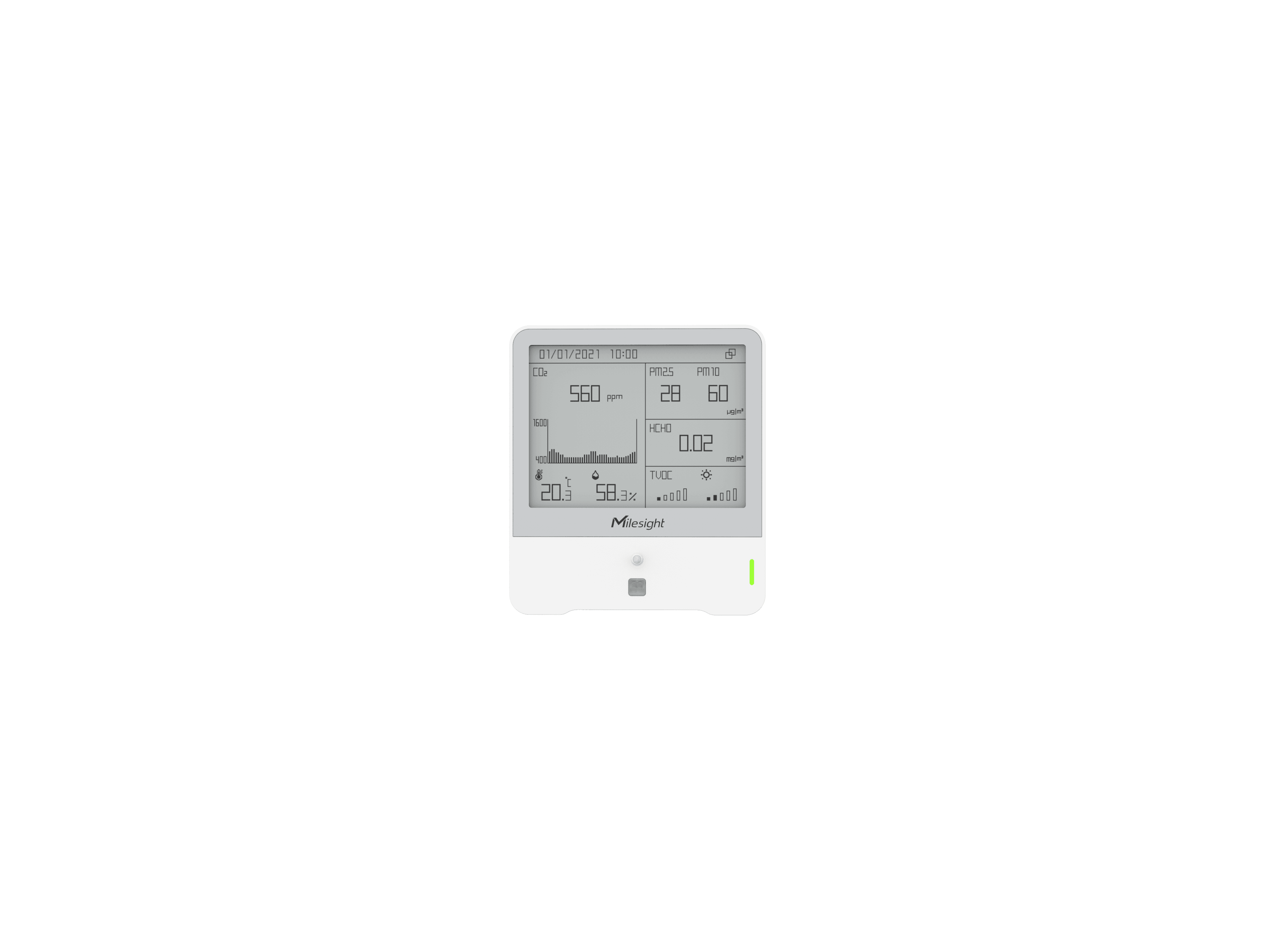Milesight IoT Indoor Ambience Monitoring Sensor, AM319-868M-HCHO LoRaWAN / Temp. / Humidity / CO2 / PIR / Light / TVOC / hPA / PM 2.5 / PM10 / HCHO /E-Ink Display
