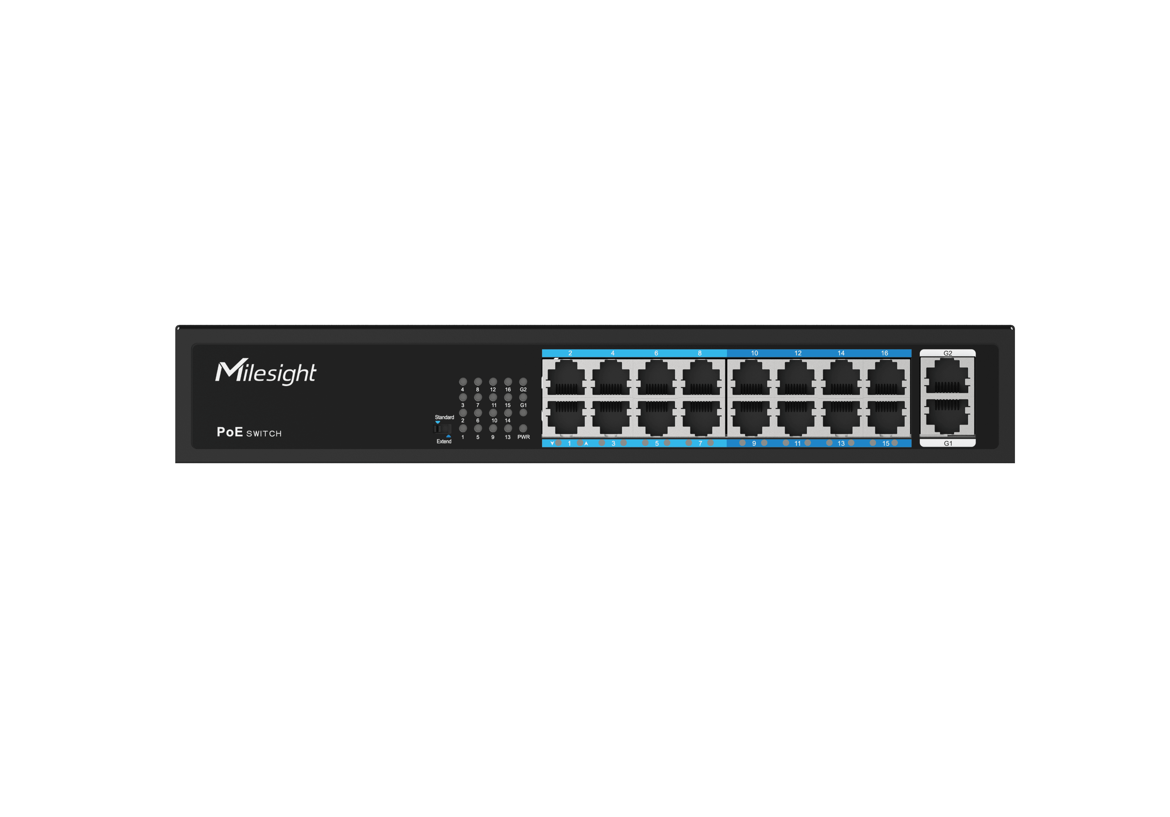 - Ports: 16 × 10/100/1000 Mbps RJ45 PoE Ports
