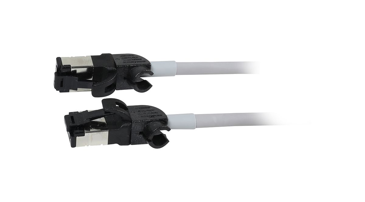 Produktinformationen "Patchkabel RJ45, CAT6A 500Mhz, 0.5m, grau, S/FTP, slimline rund d=4,5mm, TPE/LSZH(Superflex), AWG28, mit CAT7 Rohk., drehbarer Stecker, Synergy21"