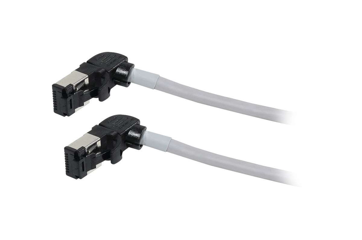 Anschluss Seite B: CAT6A, 360Grad drehbarer Stecker RJ45 mit Rasternasenschutz